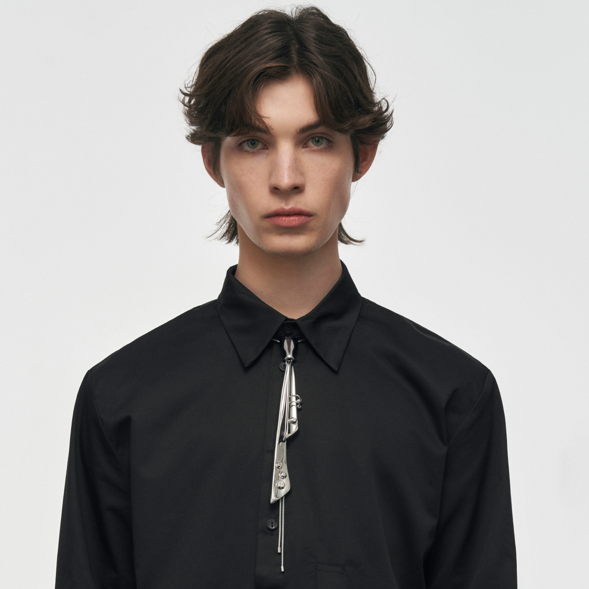 Includes: Devil Tie Adjustable Metal Necklace, and Logo Earrings