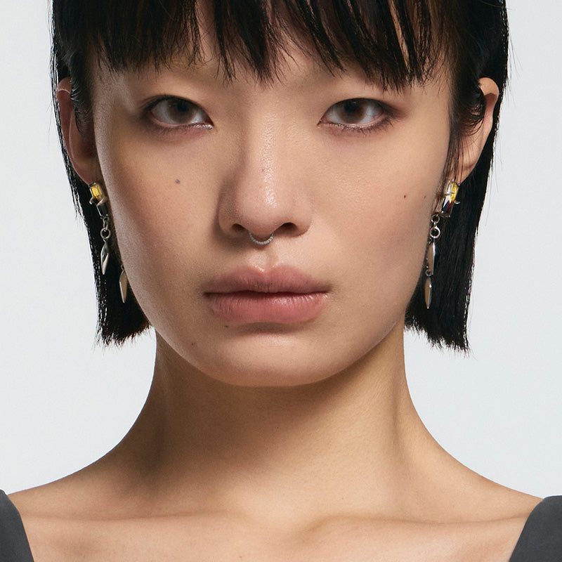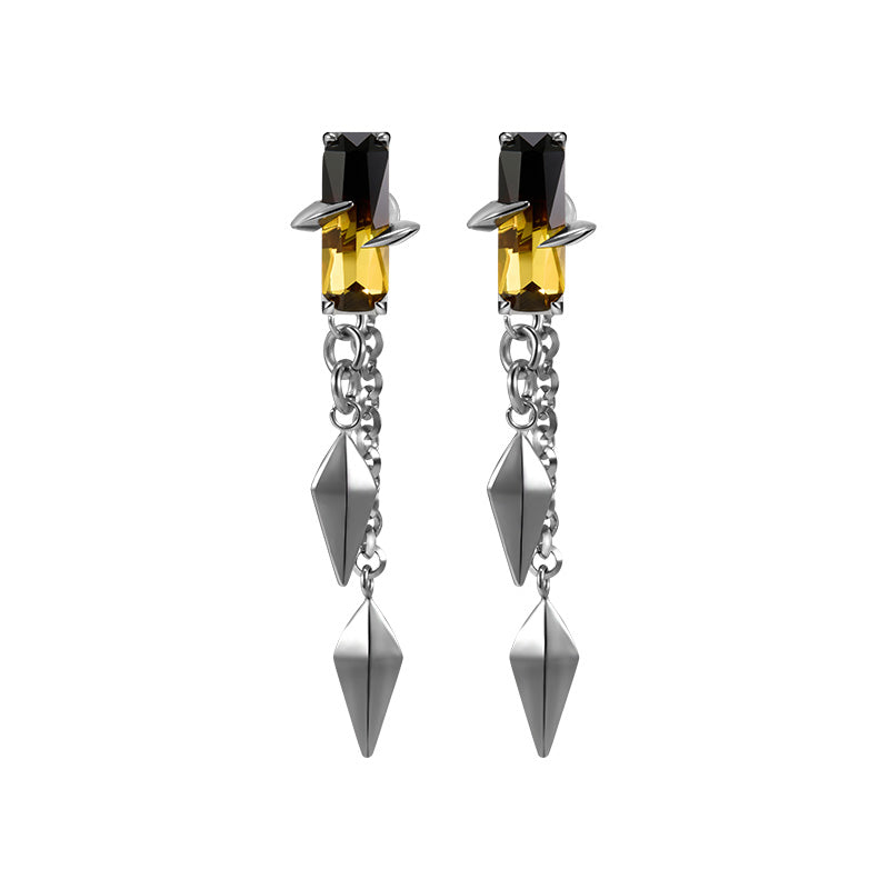 Yellow-black gradient tourmaline paired with spiked stone setting. Dangling spike pendant is detachable, allowing multiple styling options.