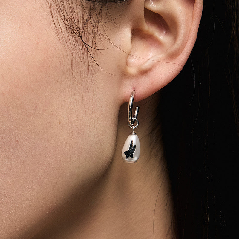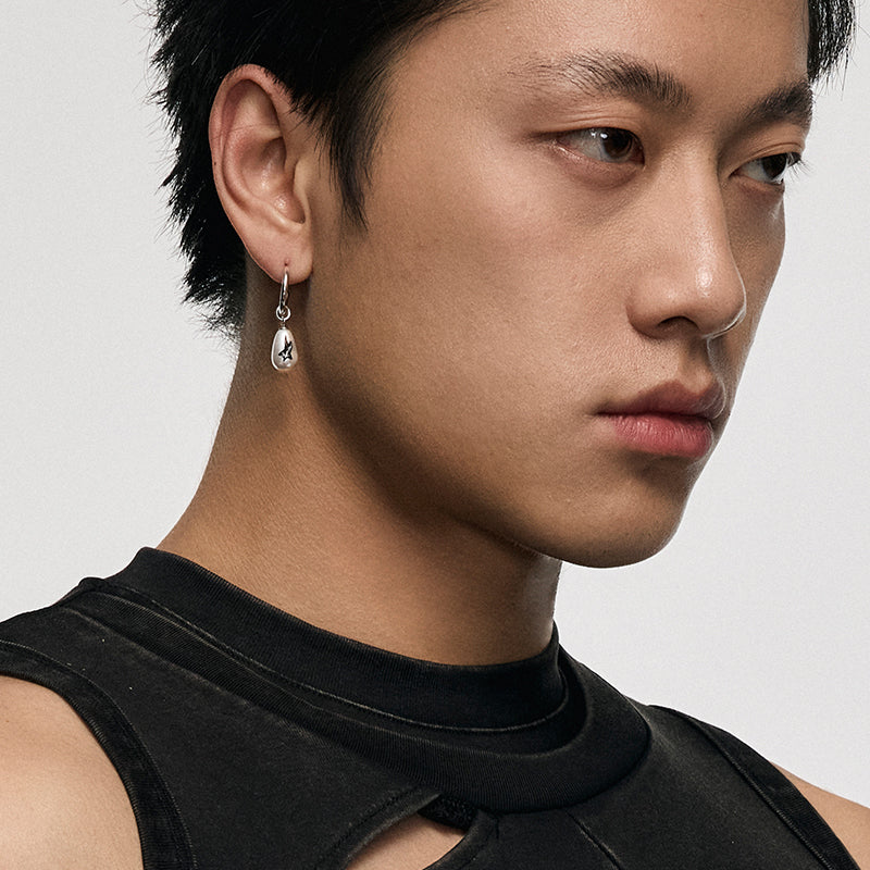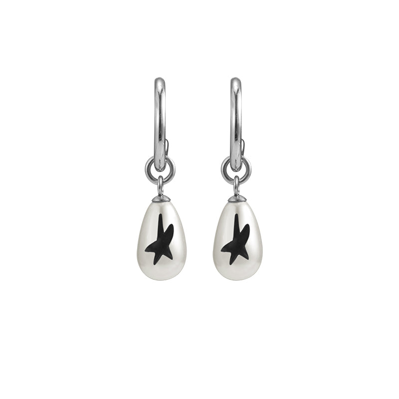 blackhead earrings, pearl graffiti earrings, star pearl earrings, hoop drop earrings, faux shell pearl jewelry, silver earrings, 316 stainless steel earrings, graffiti collection, minimalist earrings, everyday earrings, edgy earrings, unisex earrings, punk earrings, statement earrings, jewelry box, jewelry pouch