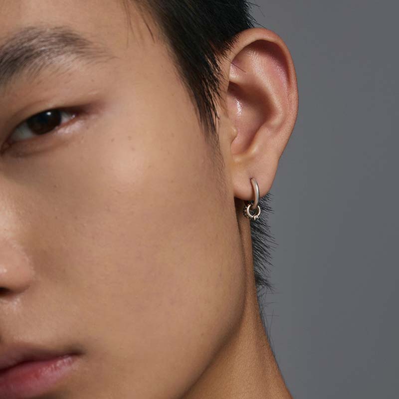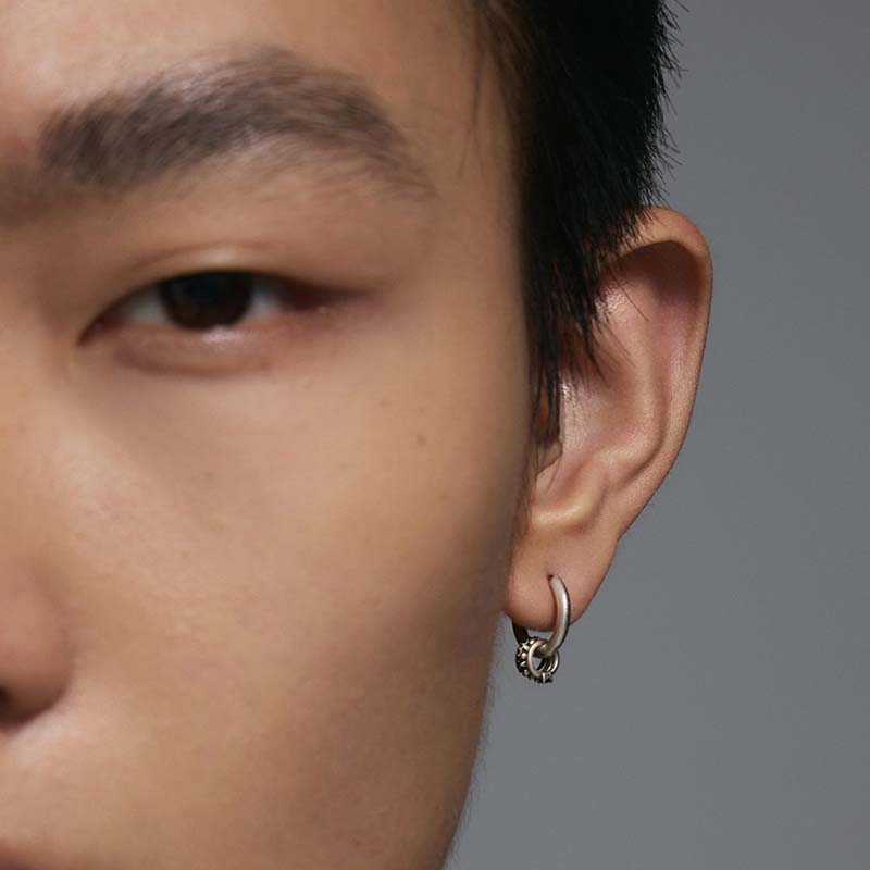 Adorned with multiple piercing rings, combining edgy coolness with rich details; compact size conveys refined style.