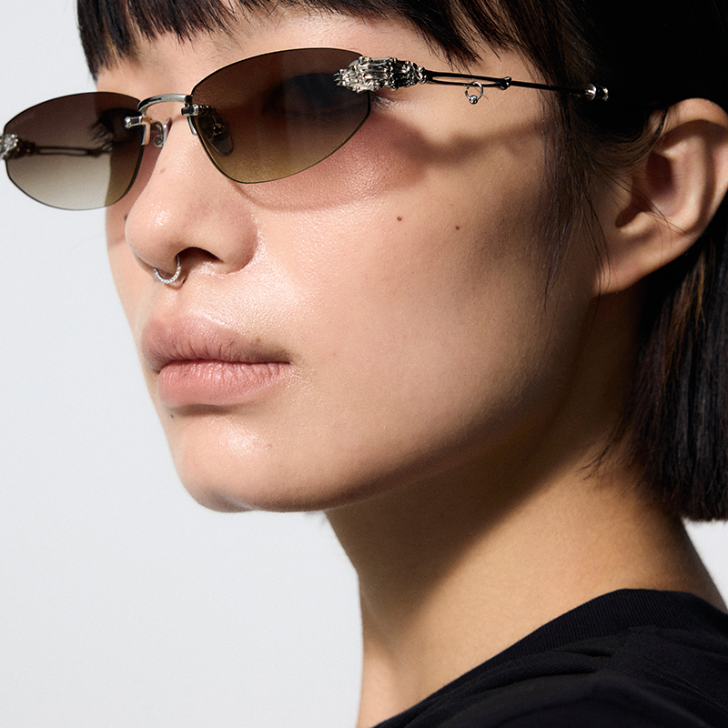 Skeletal Piercing Rimless Sunglasses (Polarized Gradient Brown)