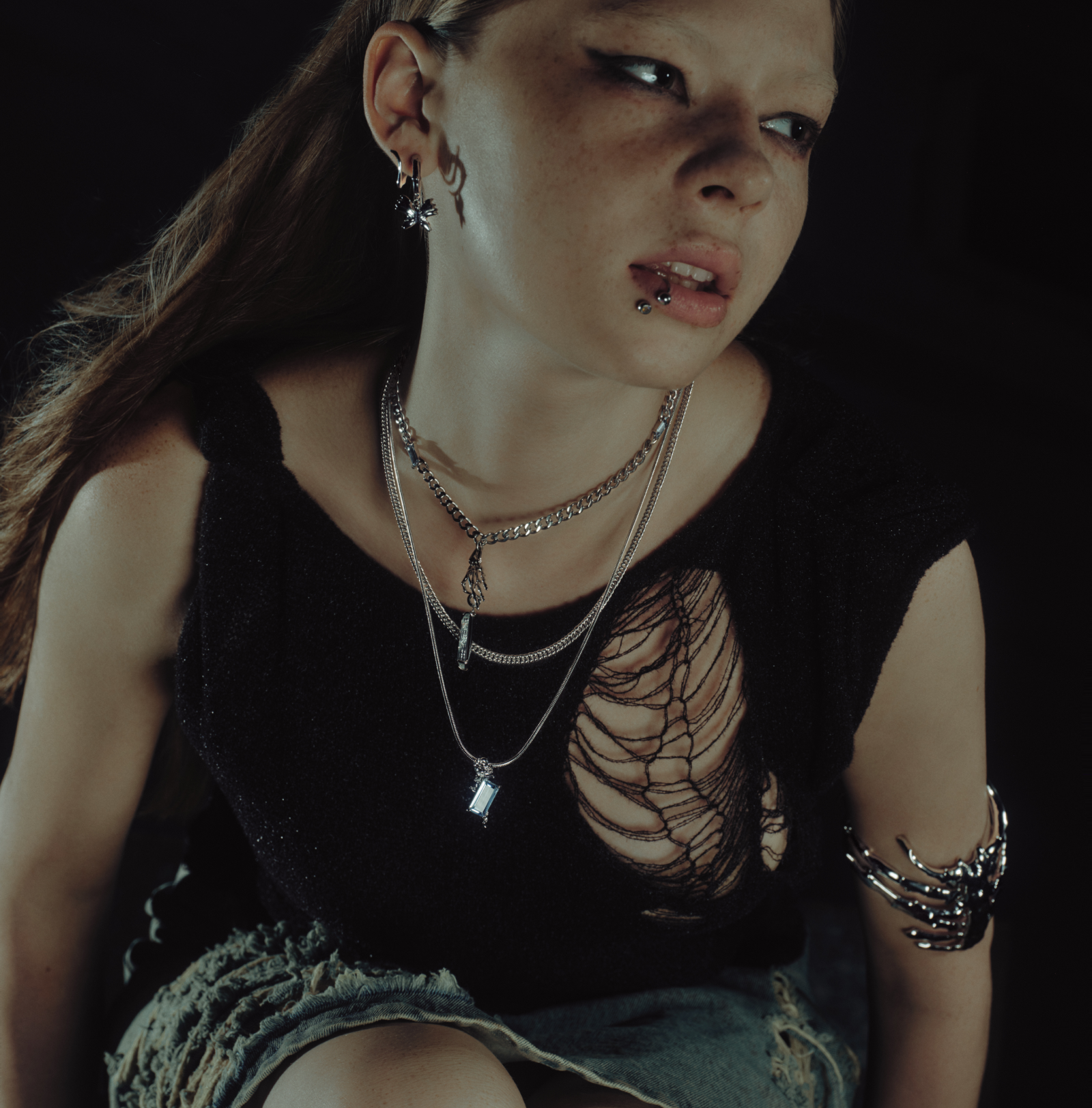 This product features a chain with an adjustable diameter, allowing it to be worn on the arm, wrist, or neck by tightening the chain.