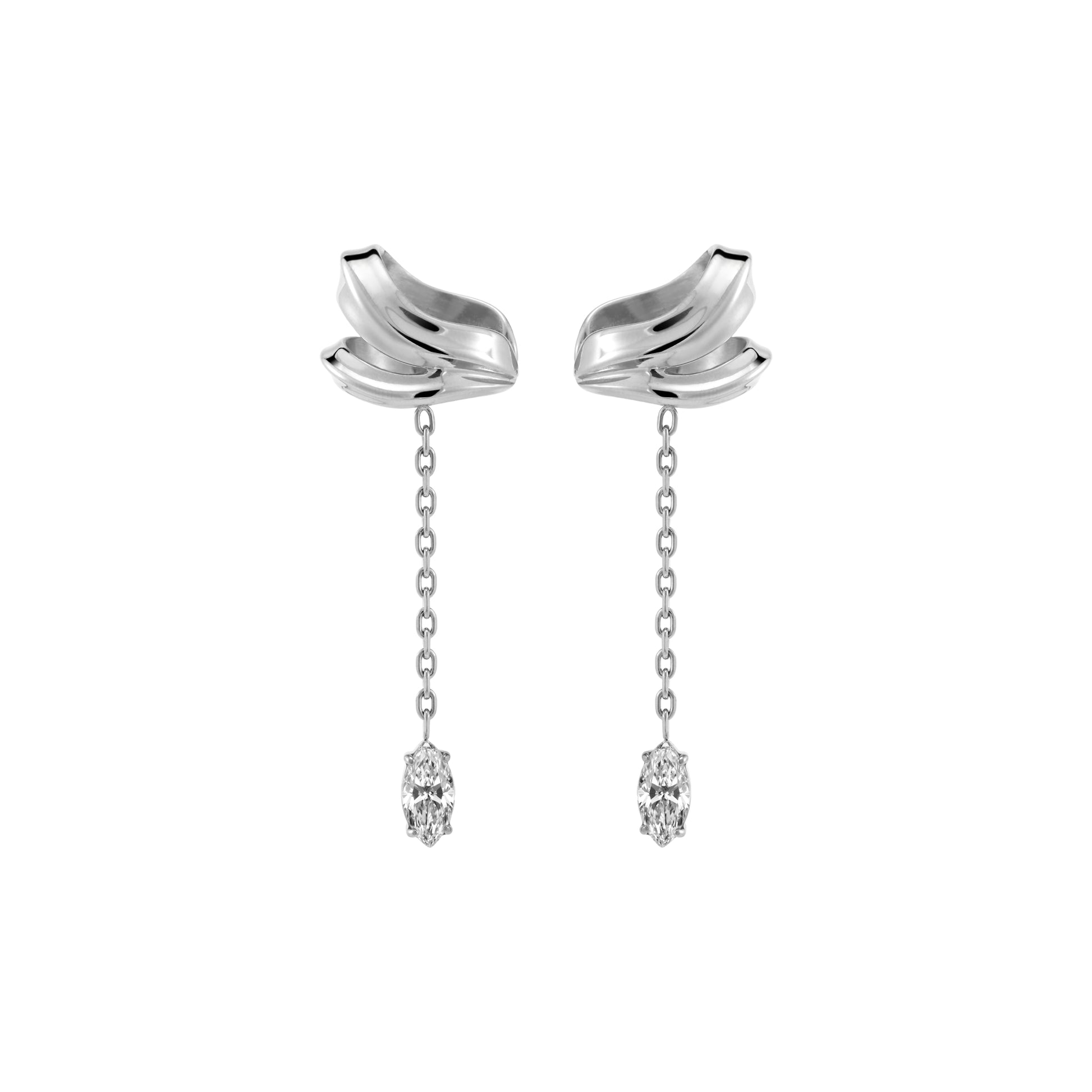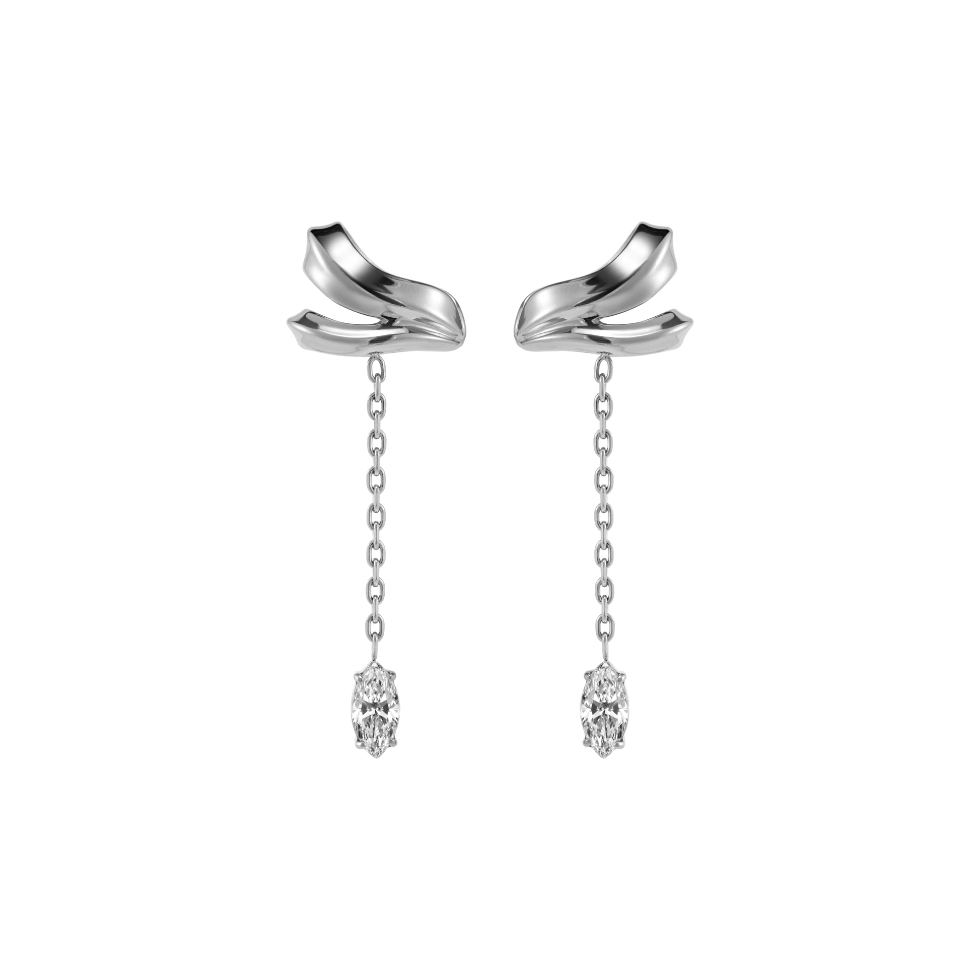 Minimal ribbon-inspired ear cuff with flowing layered chains and marquise CZ accent. Suitable for non-pierced ears.